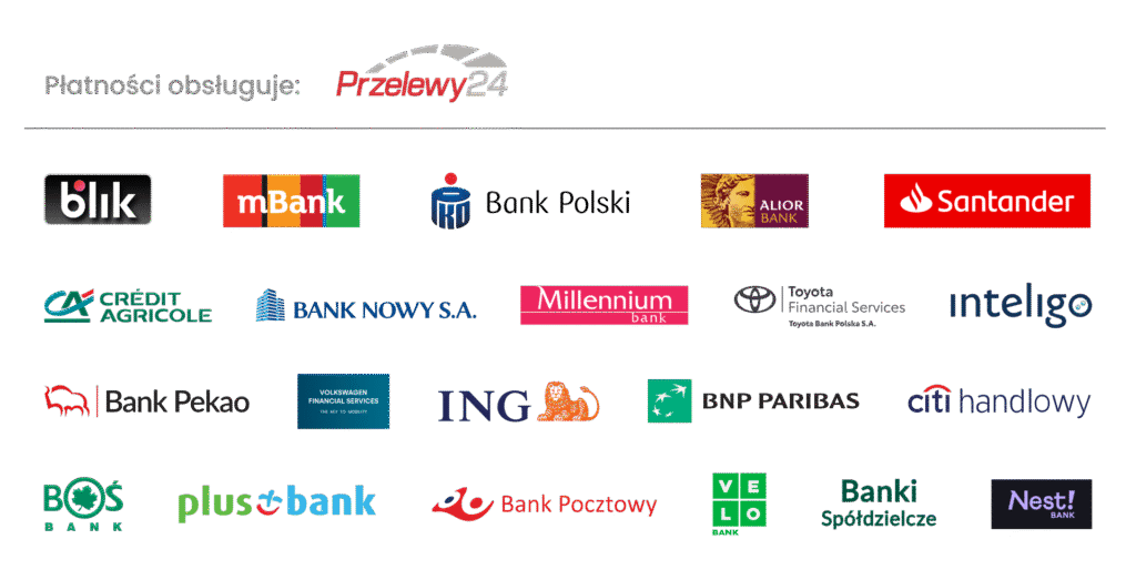 Możesz zapłacić za zamówienie w tradycyjny sposób, czyli zwykłym przelewem. Pamiętaj tylko o wpisaniu numeru zamówienia w tytule przelewu.